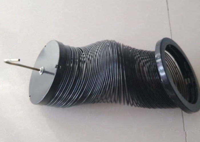 彈簧骨架分有文氏管和無文氏管兩種,拉伸長度一般為1.5M,2M,2.5M 我廠生產的彈簧骨架是采用直徑為4毫米的鋼絲盤繞而成,一般骨架直徑為小于120毫米,伸張后為25圈/米,表面鍍鋅處理。