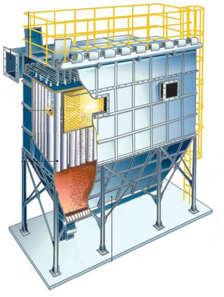 塵斗:塵斗設置在布袋室下方。除了收集灰塵外,它還用作進氣管。含塵氣體在進入布袋室前,首先進入集塵斗,粗顆粒的粉塵會被收集在這里。