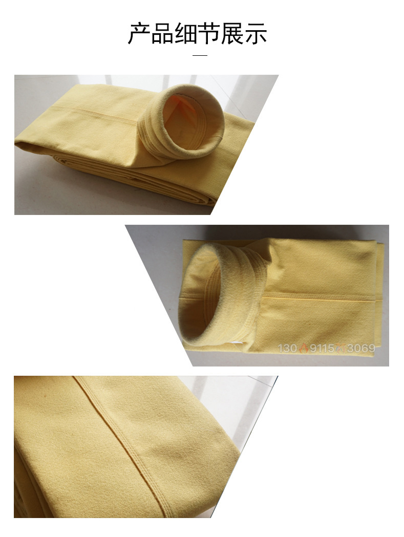 服務電話:13091153069(同微信) 氟美斯高溫除塵布袋是一個耐高溫新品種。它是由二種或二種以上的耐高溫纖維混合及層壯復合,以實現更高、更新的物理及化學性能,復合型耐高溫針刺過濾氈商品名稱確定為FMS(氟美斯),與合成化纖耐高溫濾料相比,克服了化纖濾料伸長率大、變形大、耐溫低、耐腐蝕性差的弱點;尺寸穩定性、強度更好,并且價格低于其它耐高溫化學釬維。