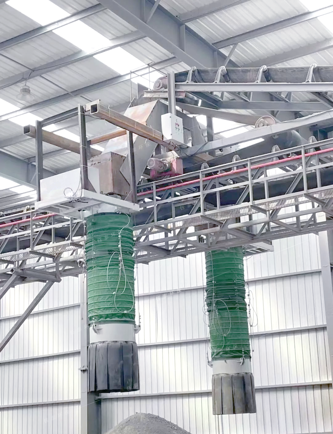 服務電話:13091153069(同微信)建材行業的砂石料皮帶輸送機卸料端的揚塵問題普遍存在,由于石料從高處的皮帶直接落在地上,其落差有3-5米高,有的甚至達到10米高,石料下落的過程中被風吹的滿天飛,不僅造成嚴重的環境污染,而且造成物料的浪費。